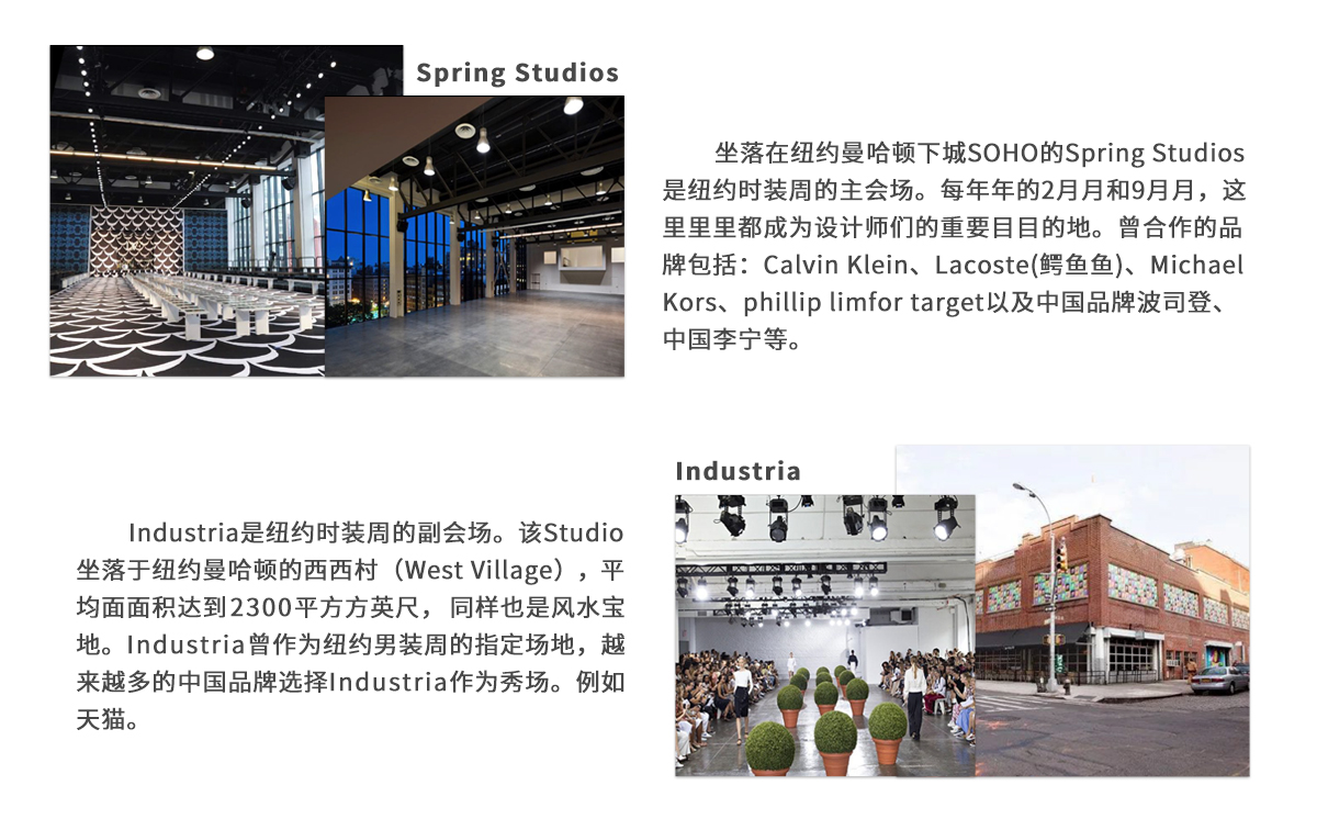 从2017年开始NYFW主办方IMG正式与Spring Studios和Industria 合作,作为官方发布场地。